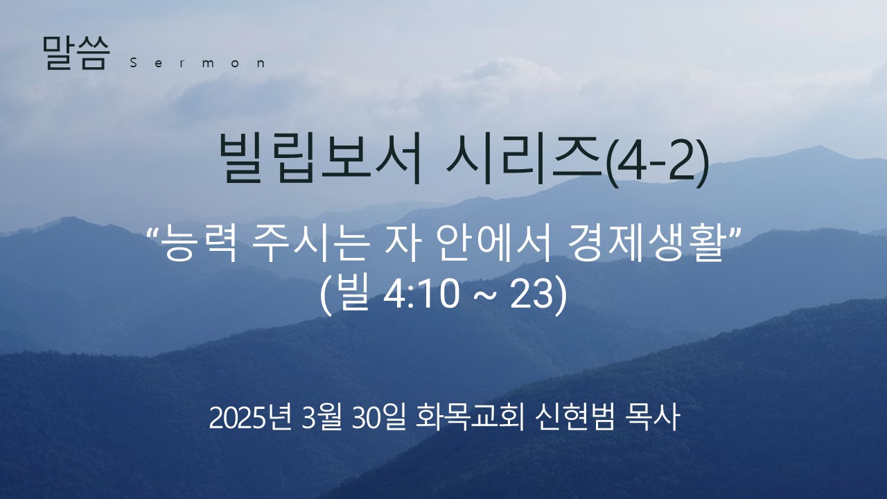 2025년 3월 30일 주일예배 - "능력 주시는 자 안에서 경제생활"(빌 4:10~23)