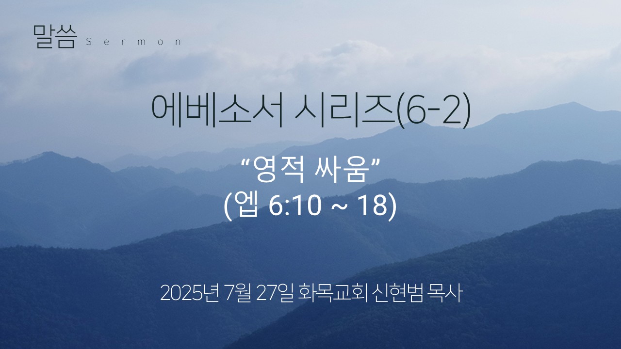 2025년 7월 27일 주일예배 - 영적 싸움 ( 엡 6:10 ~ 18 )