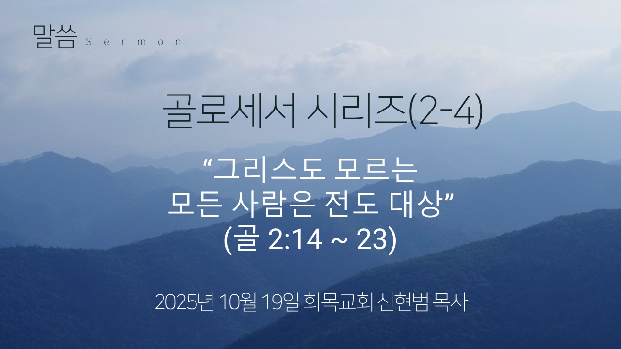 2025년 10월 19일 주일예배 - 그리스도 모르는 모든 사람은 전도 대상(골 2:14~23)